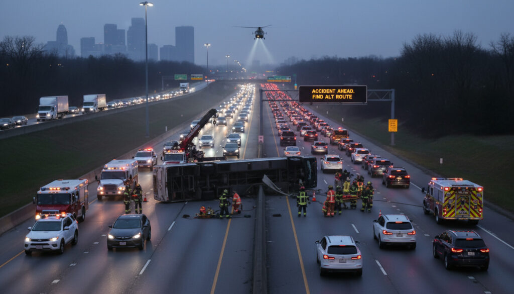 En allvarlig trafikolycka inträffade på E4 söder om Skellefteå den 2 januari 2026 när en dubbeldäckarbuss med 48…