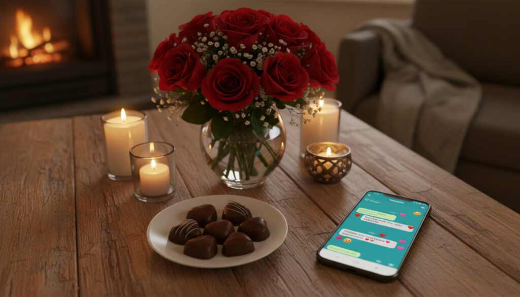 | Traditionella gåvor | Rosor, hjärtformad choklad, kort |